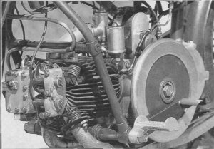 Das geringste Problem stellte der Motor dar. Wie der Bayer wusste, lief die Maschine - theoretisch zumindest, denn der letzte Einsatz in grauer Vorzeit hatte keine Probleme bereitet. Trotzdem vertraute Vetterling lieber auf seine Erfahrung in solchen Dingen: "Man sollte einen Motor nie 'blind' starten, wenn er lange nicht lief. Ich hab's immer lieber, zuerst nachzuschauen." Die Kontrolle ergab lediglich Spuren eines leichten, lang zurückliegenden Kolbenklemmers - Riefen auf Zylinderwand und Kolbenhemd. Ersatzkolben kann man in Italien bekommen, der Zylinder wurde nur gehont, das war kein Problem. Schwieriger war es, die Bronze-Gleitlager der Kurbelwelle zu erneuem - das ging nicht ohne Nachguss. Der Kopf inklusive Königswelle war in ordentlichem Zustand, selbst die offen liegenden Haam- adelfedem hatten 75 Jahre gut überstanden. Der englische 28,5-Millimeter-AMAC-Vergaser musste nur gereinigt werden, lediglich der Gasschieber war so ausgeleiert, dass Vetterling Ersatz anfertigte. Das Dreiganggetriebe erwies sich als gesund, so bekam es nur frisches Öl. Die Ölbad-Lamellenkupplung brauchte frische Beläge, und damit waren die Arbeiten am Antrieb abgeschlossen.