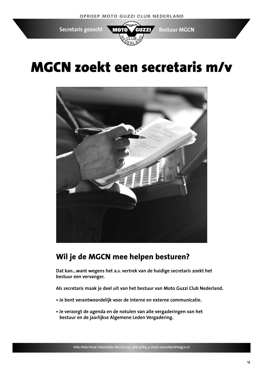 Oproep secretaris
