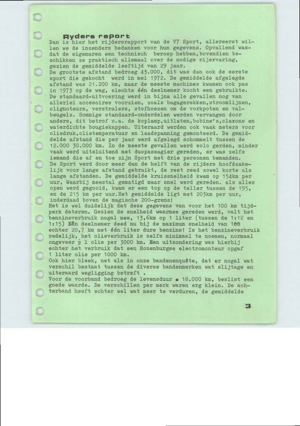 Rijdersrapport V7 Sport naar aanleiding van vragenlijst Koerier